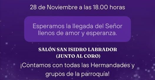 El próximo viernes 28 nos uniremos a la charla "Esperamos la llegada del Señor llenos de amor y esperanza".